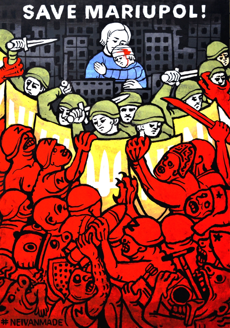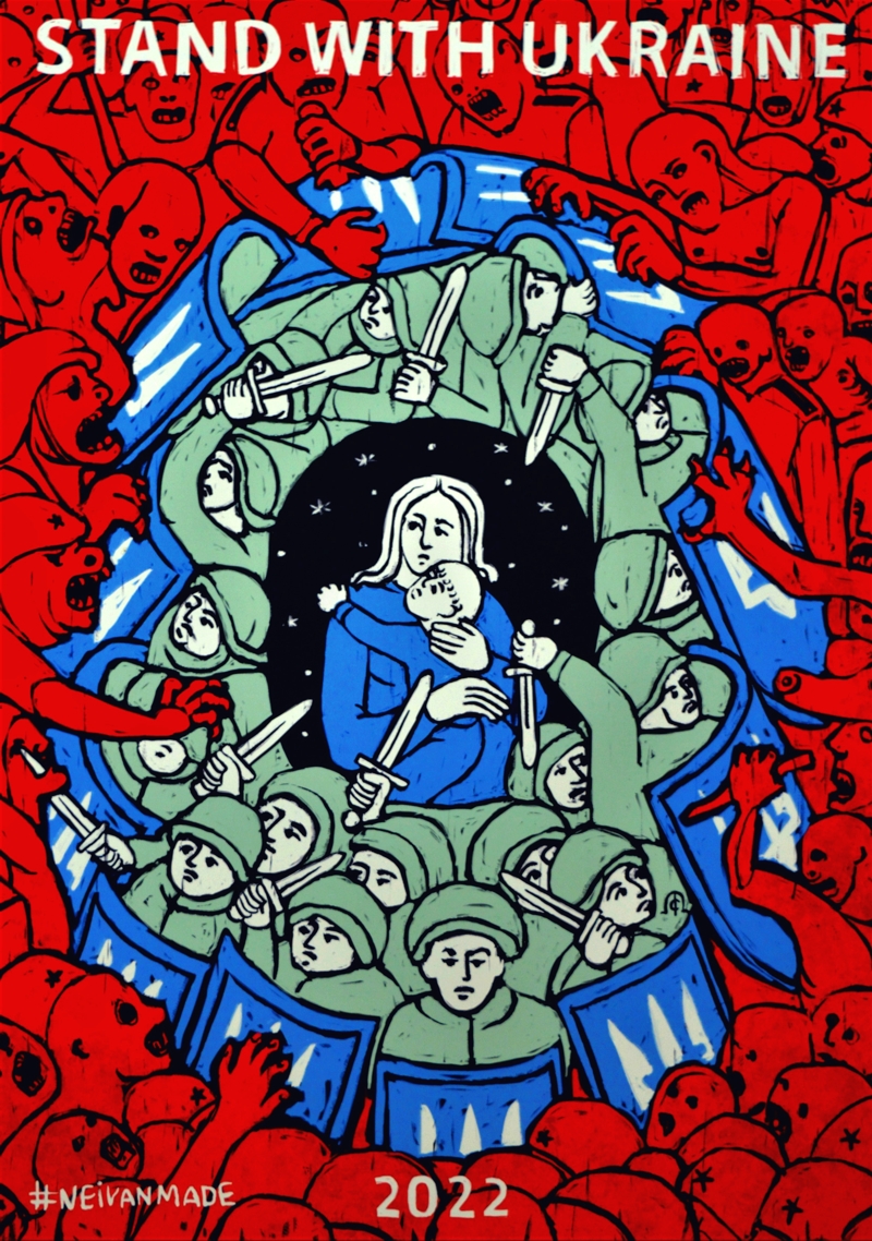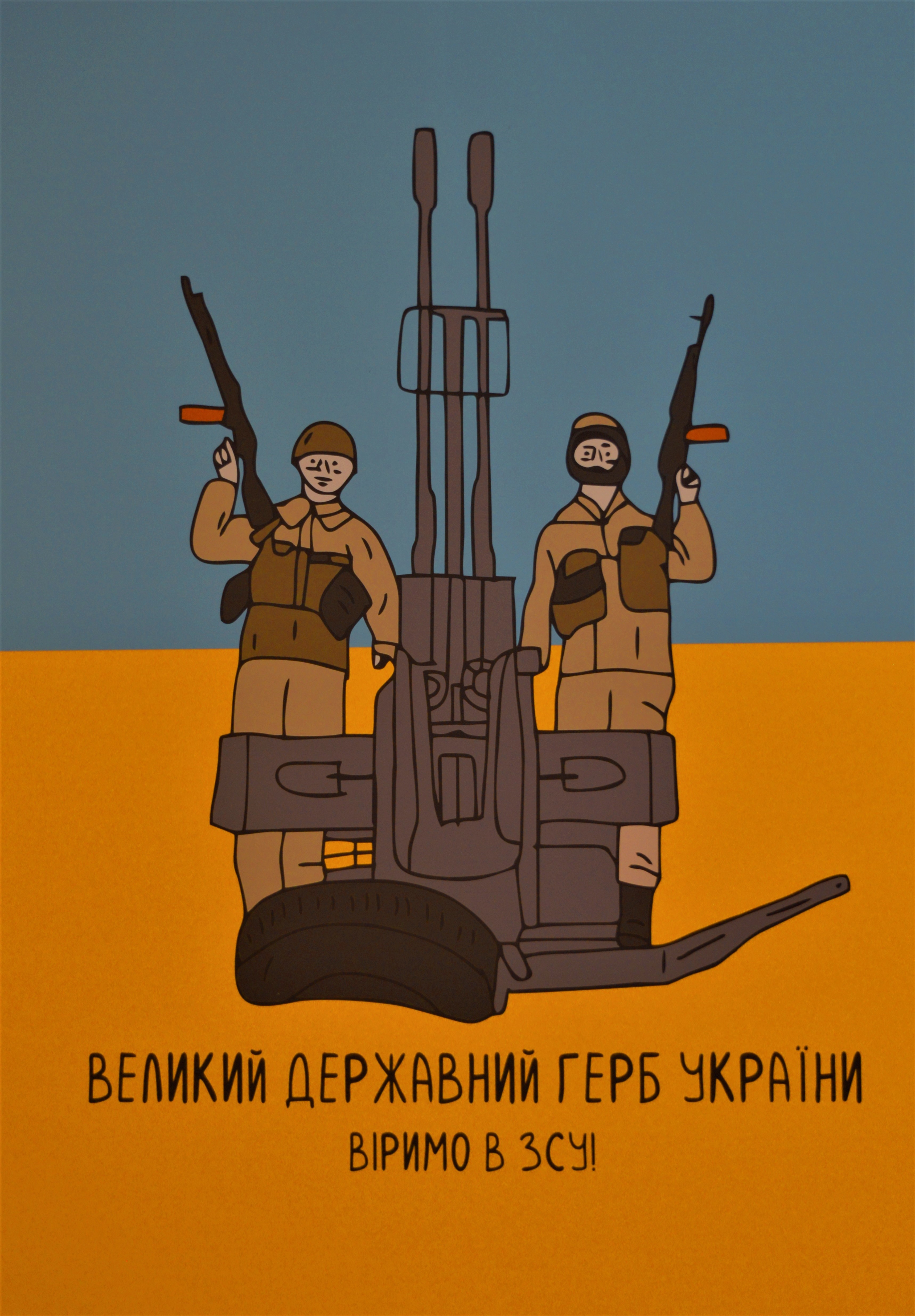 A raíz del comienzo de la guerra, en toda Ucrania, pero especialmente en la ciudad de Leópolis -Lviv-, unos jóvenes artistas gráficos, ilustradores y muralistas se pusieron manos a la obra y junto con el Centro de Arte de Leópolis y los ayuntamientos de varias ciudades ucranianas distribuyeron un sinfín de carteles de guerra por sus calles. Los carteles surgieron como una reacción del arte a la guerra, una colaboración de los artistas con la causa, una forma de resistencia, de hacer llegar a la población mensajes de aliento o mostrando el dolor y la rabia, una forma también de llamar la atención sobre el conflicto y denunciar la situación de invasión y destrucción de su país.
